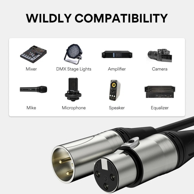 Được trang bị giắc cắm và phích cắm XLR 3 chân tiêu chuẩn, dây mic Maono XLR vừa khít với các thiết bị XLR, chẳng hạn như Hệ thống PA (Hệ thống phát thanh công cộng), micro tụ điện, micro shotgun, máy ghi âm phòng thu, bộ hòa âm phòng thu, bàn trộn âm, buồng DJ, ngăn vá, bộ tiền khuếch đại, loa chủ động, bộ trộn âm, đèn sân khấu, bộ khuếch đại, nguồn ảo.
