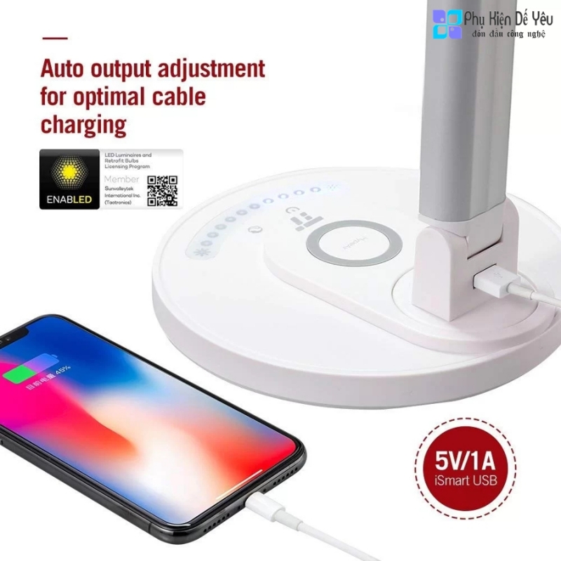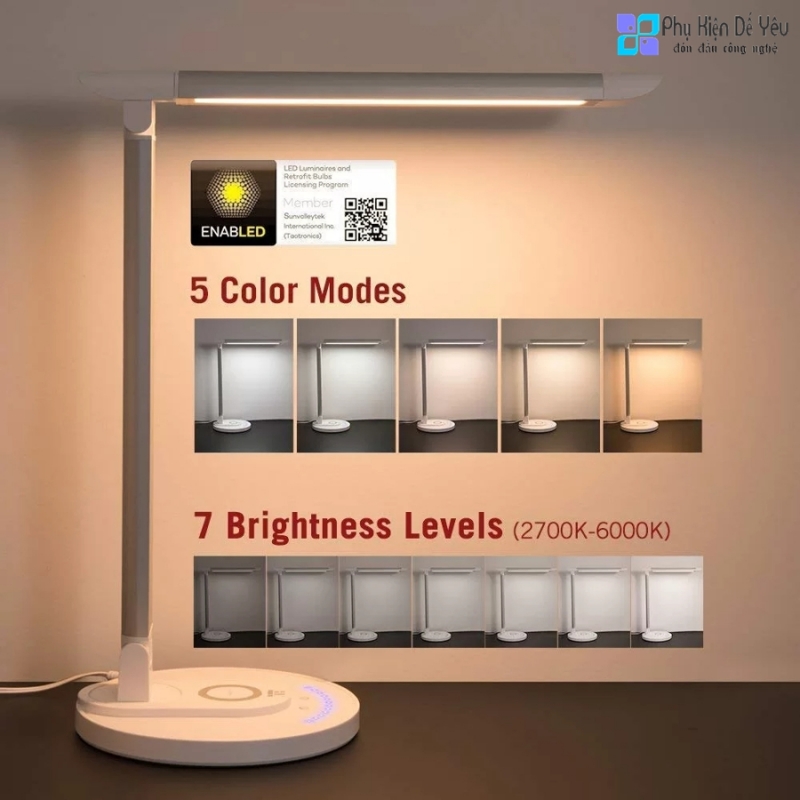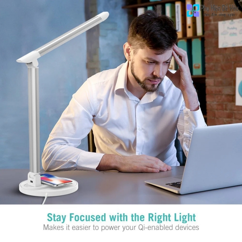 ✔️ Đèn bàn LED tích hợp sạc không dây Qi tiện lợi