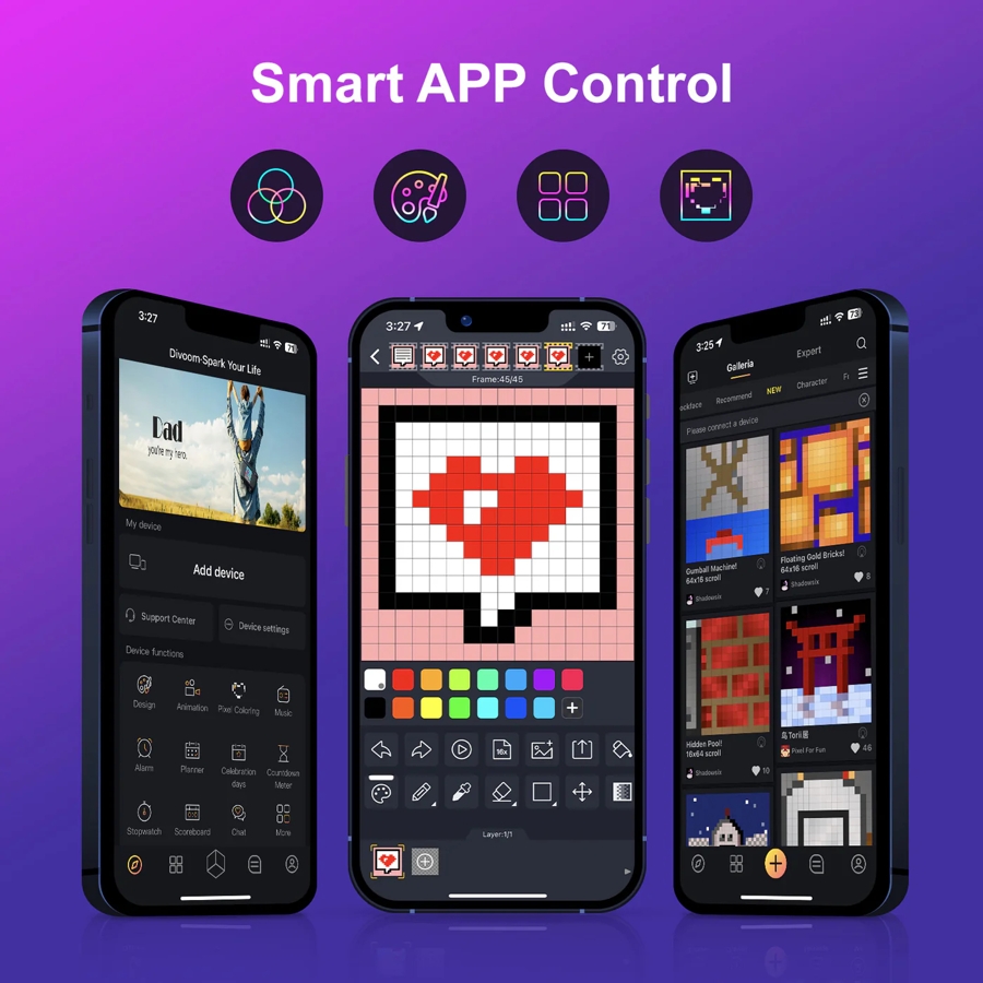 Hơn 500.000 nghệ sĩ kỹ thuật số, người đam mê công nghệ và tín đồ trang trí đã sử dụng Divoom Pixoo 16 Wifi Pixel Art Frame để biến đổi không gian sống của họ. Đây là thời điểm để bạn trải nghiệm phép thuật pixel và nâng tầm không gian sống của mình.