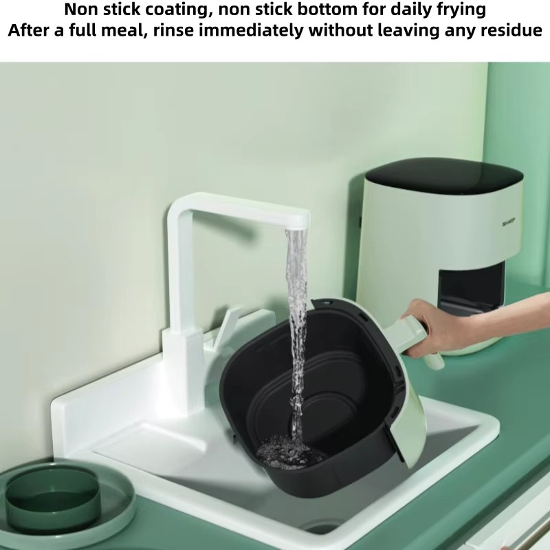 Nồi chiên không dầu tự động SHARP KF-AF-E50DK-G dung tích lớn 5L, tích hợp chức năng hấp, chiên mềm, nướng, lớp lót chống dính bên trong, giữ ấm 24 giờ.