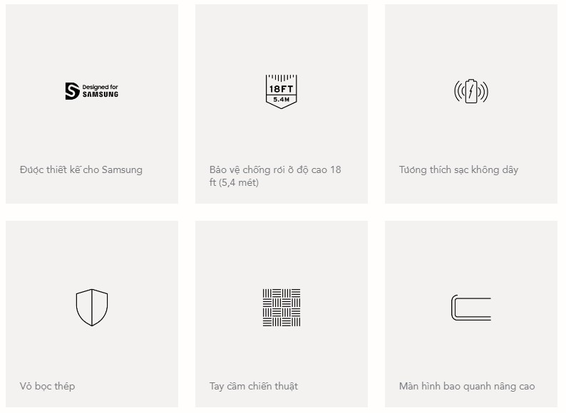 "Thiết kế cho Samsung" được cấp cho các nhà sản xuất bên thứ ba để thiết kế và sản xuất các phụ kiện tương thích với Samsung Electronics Co., Ltd. Samsung Electronics Co., Ltd không chịu trách nhiệm về thiết kế, sản xuất hoặc chất lượng của phụ kiện này, về hoạt động của nó hoặc về việc tuân thủ các tiêu chuẩn an toàn và quy định. Vui lòng liên hệ với nhà sản xuất phụ kiện nếu có bất kỳ câu hỏi nào liên quan đến phụ kiện. pkdy.vn