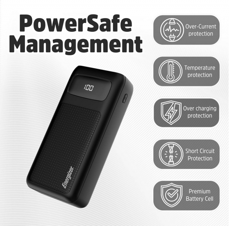 Không chỉ mạnh mẽ về hiệu suất, Energizer UE30063PQ còn được tích hợp công nghệ PowerSafe đa lớp. Cơ chế này tự động ngắt mạch khi xảy ra tình trạng quá tải, quá áp, quá nhiệt hay chập điện – giúp bảo vệ an toàn tuyệt đối cho cả thiết bị lẫn người dùng.