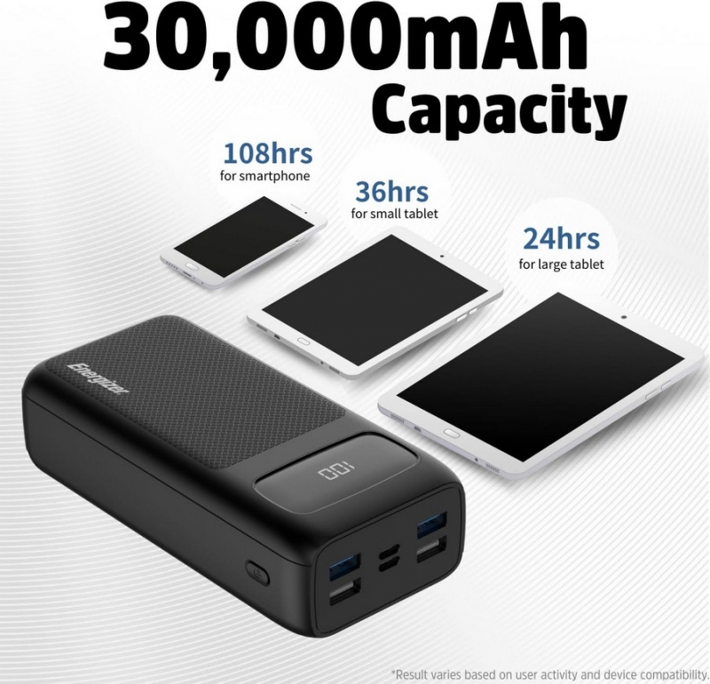 Với viên pin Lithium Polymer dung lượng 30,000mAh (111Wh), Energizer UE30063PQ cung cấp khả năng sạc nhiều lần cho điện thoại và thiết bị khác, lý tưởng cho những chuyến công tác dài ngày, đi du lịch hoặc khi làm việc ngoài trời. Đây là một trong những dòng pin dự phòng dung lượng lớn hiếm hoi vẫn đảm bảo tính di động và an toàn khi mang lên máy bay.