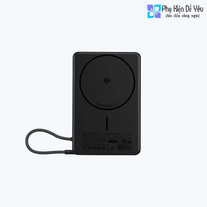 Pin dự phòng không dây từ tính Mazer MagLink70 10,000 mAh Qi2 Certified 15W Magnetic Wireless Power Bank with Built in USB-C Cable (CCC Certified)