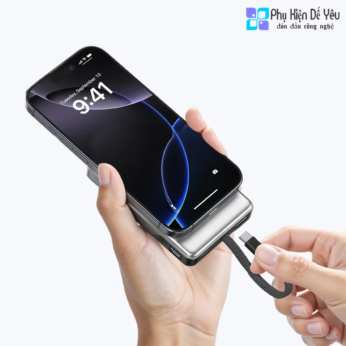 🔌 Cáp USB-C tích hợp – Gọn nhẹ, không cần mang thêm dây