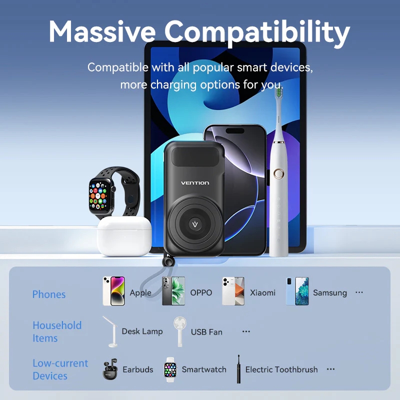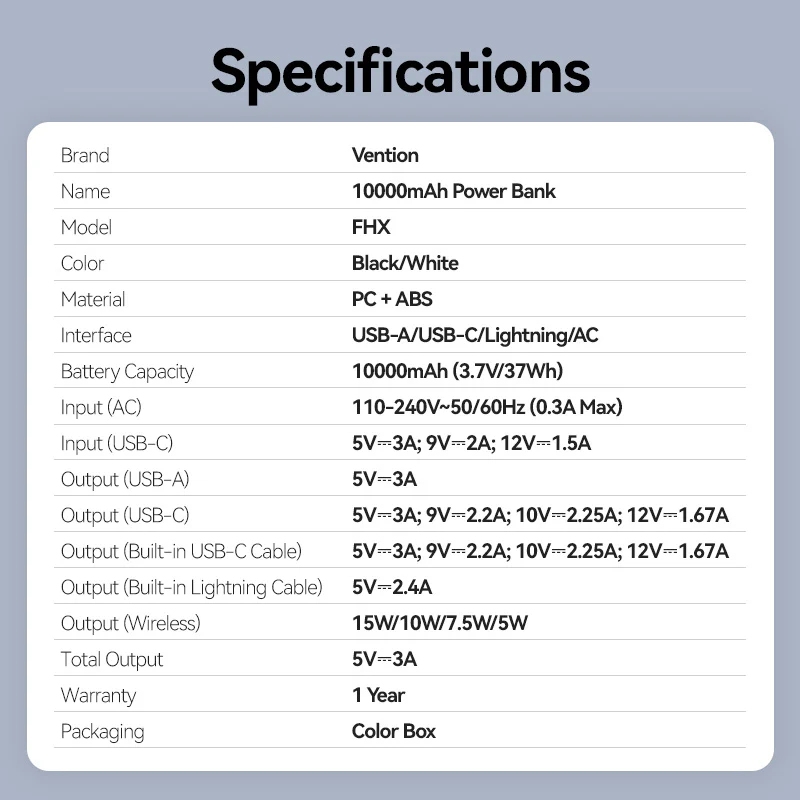 Không chỉ là một pin sạc dự phòng thông thường, Vention FHX là bộ sạc di động 3-trong-1 toàn diện, giúp bạn duy trì năng lượng cho mọi thiết bị ở bất kỳ đâu – từ văn phòng, quán cà phê đến những chuyến du lịch dài ngày.