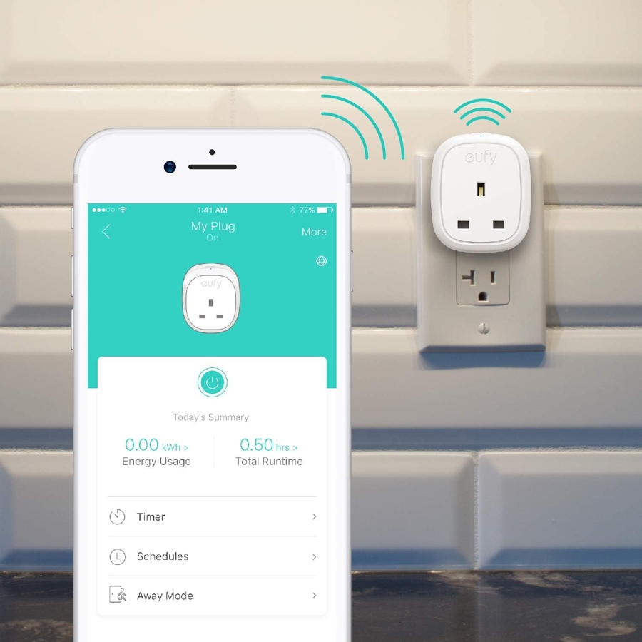 Ổ cắm WiFi thông minh Eufy giúp bạn bật/tắt thiết bị điện từ xa và theo dõi lượng điện tiêu thụ.
