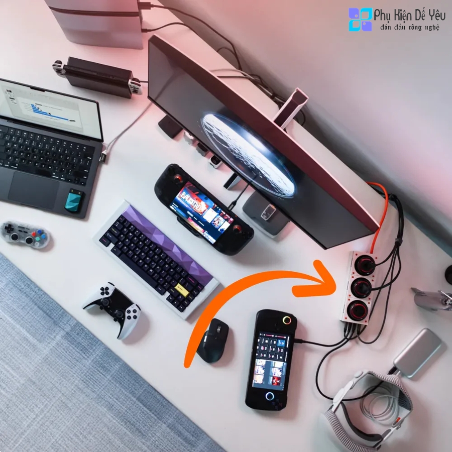 “Bàn làm việc của mình trước kia đầy dây nhợ và ổ cắm rối mắt. Từ khi dùng trạm sạc cho nhiều thiết bị Genki Moonbase, mọi thứ gọn gàng hơn hẳn, laptop và điện thoại đều sạc nhanh, rất tiện khi vừa làm vừa chơi game.” – Khách hàng Minh Quân
